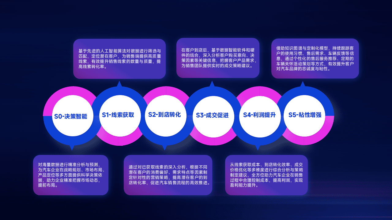 通过拓宽潜在客户来源、、优化线索分配并提高到店转化率,,,,以增强销售效率。。。。同时,,,利用线索数据不断优化分析模型,,,有效提升转化率,,扩大营销影响力。。。